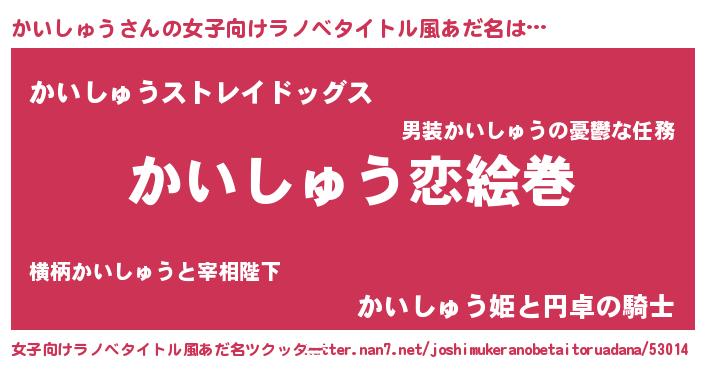 | ヒーロー風カッコイイあだ名 | 『慈愛の使者かいしゅう』『天弓騎士カイ』 |