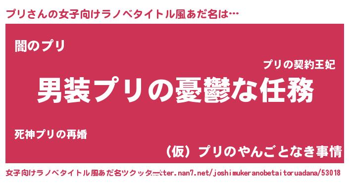 | 男性向けラノベタイトル風あだ名 | 『冴えないプリの育てかた』『プリの憂鬱』 |