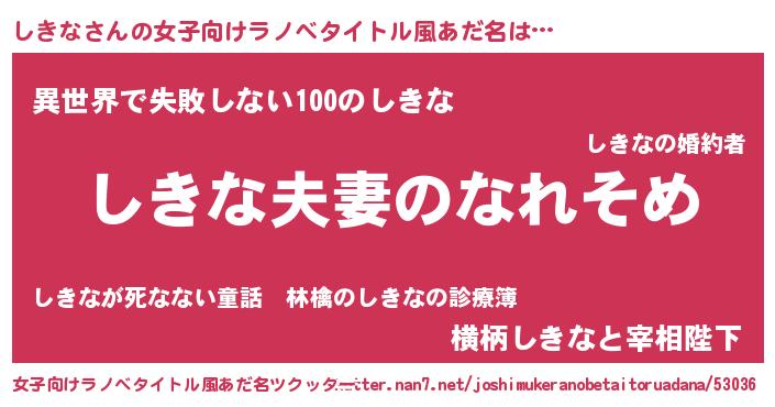 | ヒーロー風カッコイイあだ名 | 『正義の使者しきな』『ネオシキナ』 |