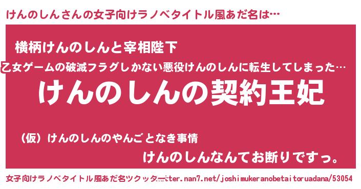 | 男性向けラノベタイトル風あだ名 | 『けんのしんという概念が存在しない退屈な世界 』 |