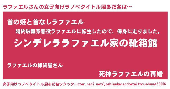 | ヒーロー風カッコイイあだ名 | 『正義の使者ラファエル』『黄金騎士ラフ』 |
