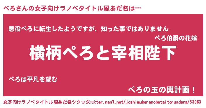 | 男性向けラノベタイトル風あだ名 | 『ぺろに滅ぼされるだけの簡単なお仕事です』 |