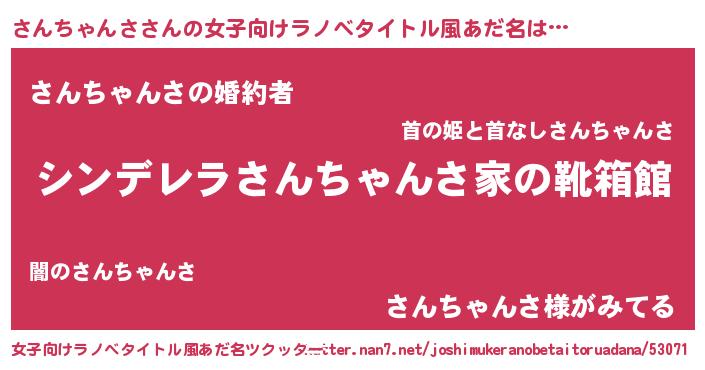 | 男性向けラノベタイトル風あだ名 | 『緋弾のサンチャンサ』 |