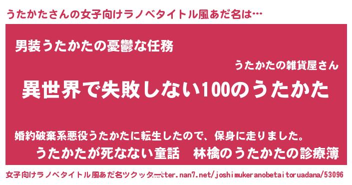 | ヒーロー風カッコイイあだ名 | 『ネオウタカタ』『仮面ウタダー』 |
