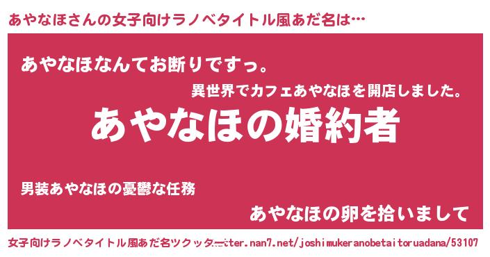 | 胡散臭い通販商品みたいなあだ名 | 『運命の人と巡り会える高級そうな絵画…その名も「あやなほ」』 |