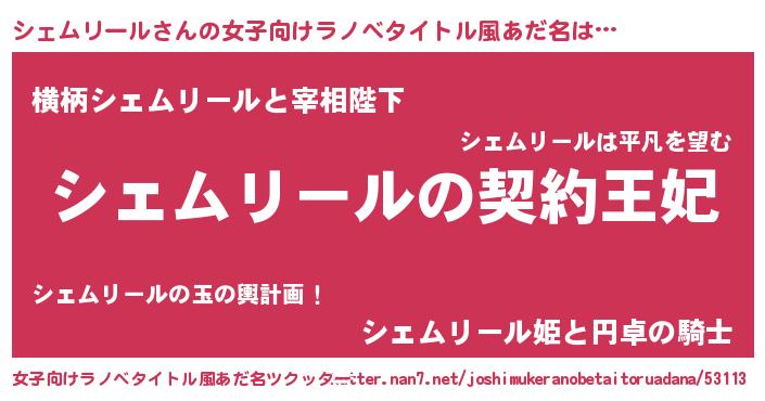 | 男性向けラノベタイトル風あだ名 | 『誰もが恐れるあのシェムリールが、ぼくの専属メイドになるようです。』 |