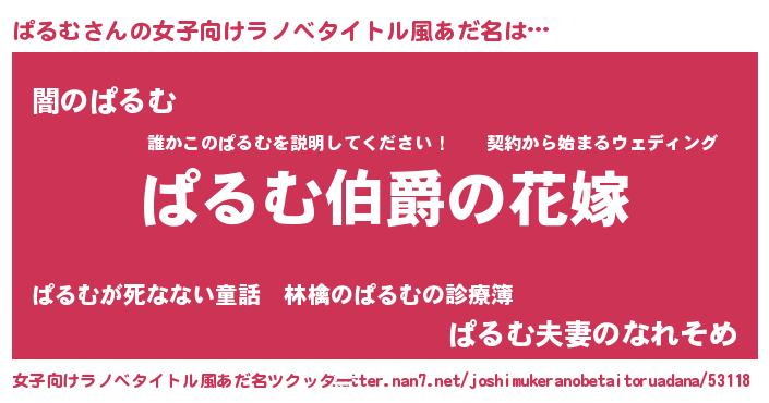 | 男性向けラノベタイトル風あだ名 | 『やはりぱるむの青春ラブコメはまちがっている 』 |