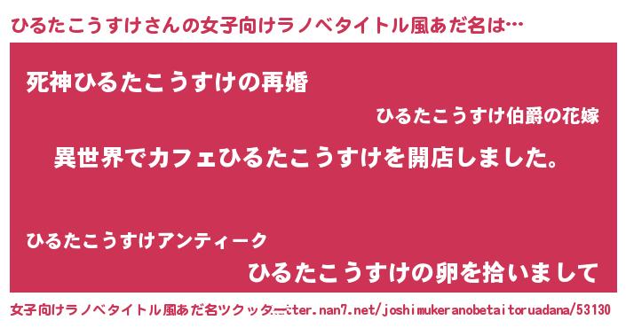 | ヒーロー風カッコイイあだ名 | 『ネオヒルタコウスケ』『魔戒騎士ヒル』 |