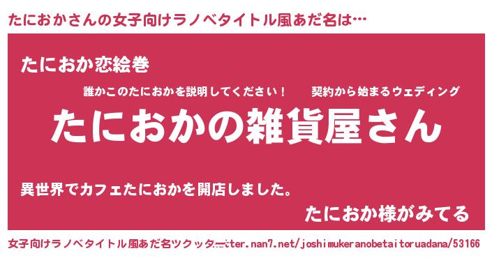 | 男性向けラノベタイトル風あだ名 | 『やはりたにおかの青春ラブコメはまちがっている 』 |