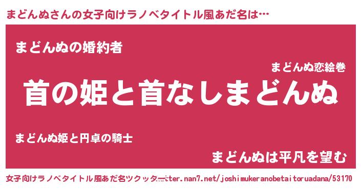 | 男性向けラノベタイトル風あだ名 | 『はたらくまどんぬさま!』 |