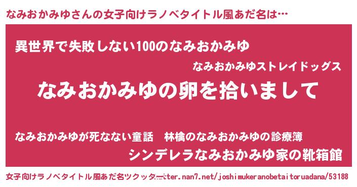 男性向けラノベタイトル風あだ名 | 『ダンジョンになみおかみゆを求めるのは間違っているだろうか』 |