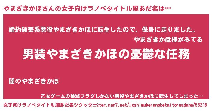 | 男性向けラノベタイトル風あだ名 | 『冴えないやまざきかほの育てかた』 |