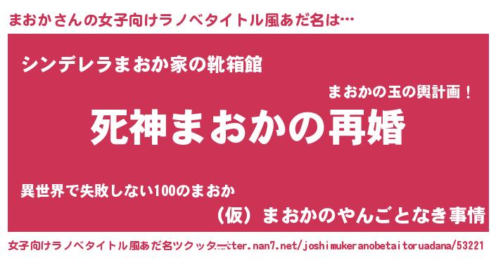 | ヘコむあだ名 | 『まおふぇ~』『まおか(遠い目)』 |