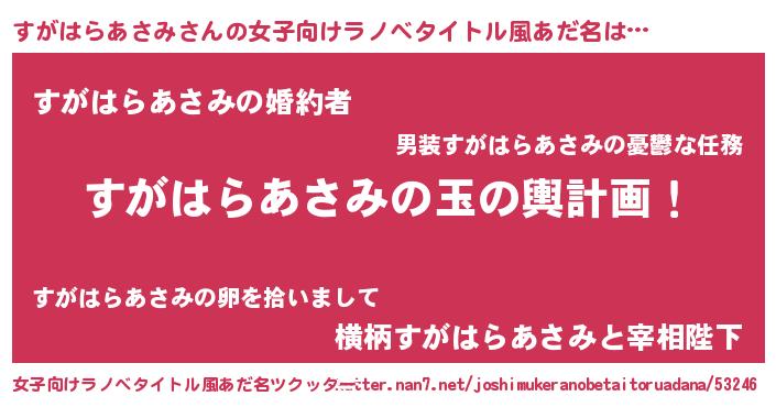 | 男性向けラノベタイトル風あだ名 | 『すがはらあさみ~年齢イコール彼女いない歴の魔法使い~』 |