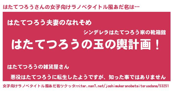 | 男性向けラノベタイトル風あだ名 | 『転生したらはたてつろうだった件』 |