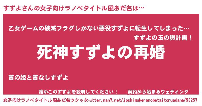 | ヒーロー風カッコイイあだ名 | 『慈愛の使者すずよ』『仮面スズダー』 |