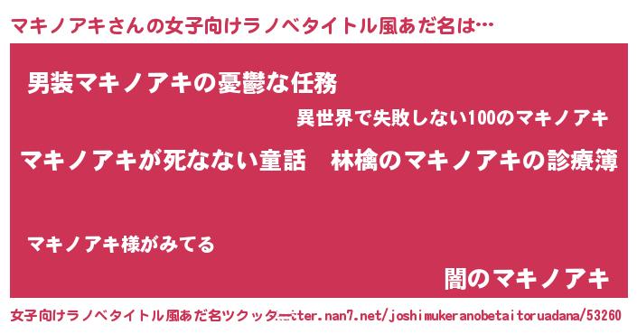 | ヘコむあだ名 | 『マキノアキ(笑)』『マキっちょ』 |