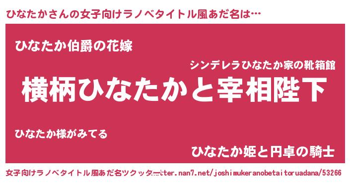 | 男性向けラノベタイトル風あだ名 | 『ひなたかに滅ぼされるだけの簡単なお仕事です』 |