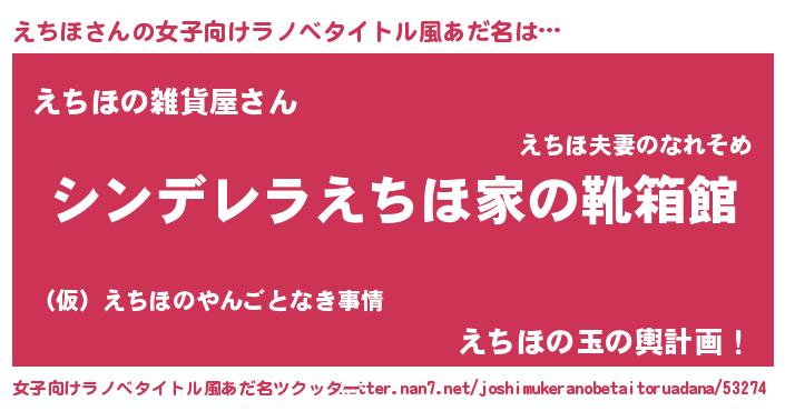 | 男性向けラノベタイトル風あだ名 | 『緋弾のエチホ』『えちほの憂鬱』 |