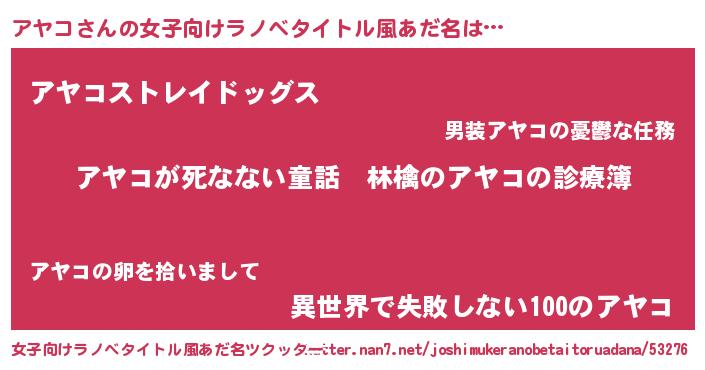 | 意味不明あだ名 | 『住所不定無職アヤコ(1歳)』『自称アヤコ』 |