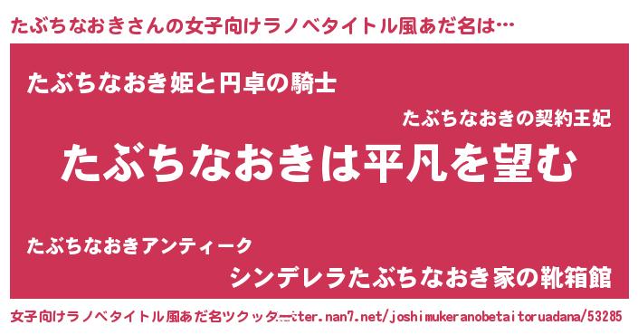 | 男性向けラノベタイトル風あだ名 | 『ダンジョンにたぶちなおきを求めるのは間違っているだろうか』 |
