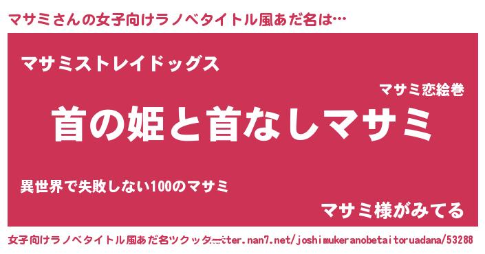 | 男性向けラノベタイトル風あだ名 | 『はたらくマサミさま!』 |