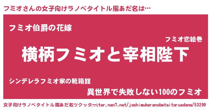 | ファンタジー風あだ名 | 『エターナルフミオー』『フミディッシュ』 |