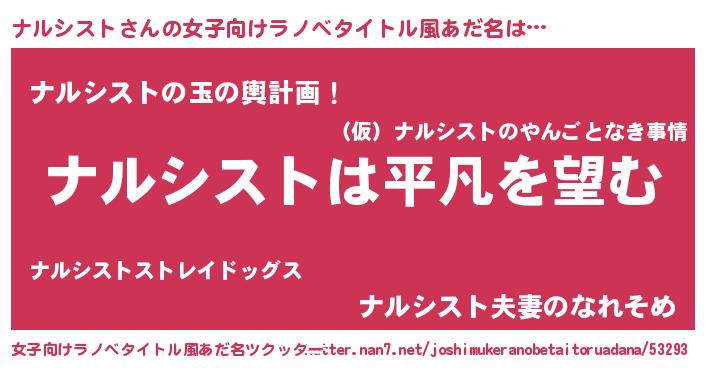 | 胡散臭い通販商品みたいなあだ名 | 『信頼と実績のサプリメント…その名も「ナルシスト」』 |
