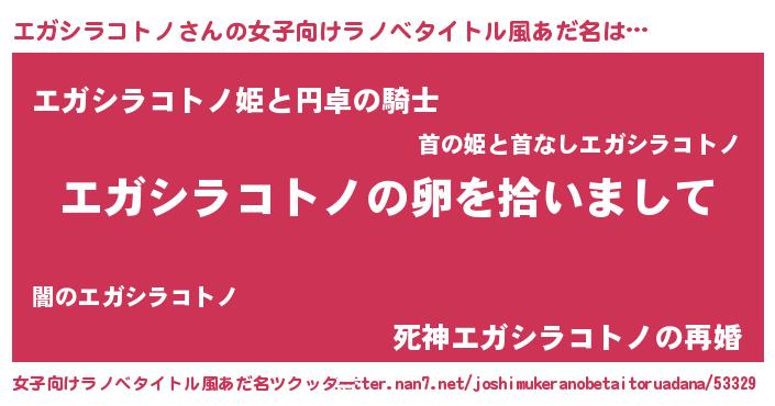 | 男性向けラノベタイトル風あだ名 | 『エガシラコトノの嫁は女の子じゃないと思った?』 |