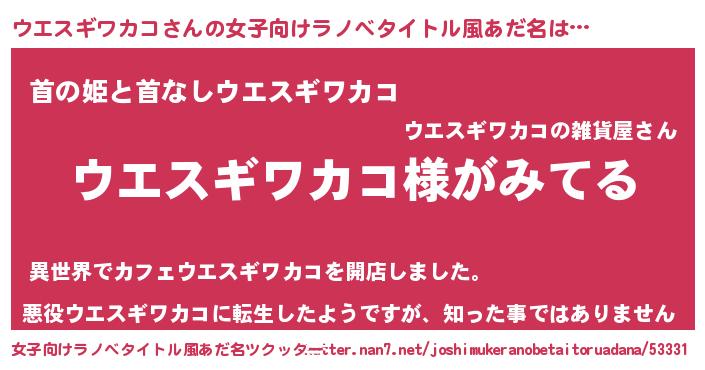 | 意味不明あだ名 | 『とにかく怪しいウエスギワカコ』 |