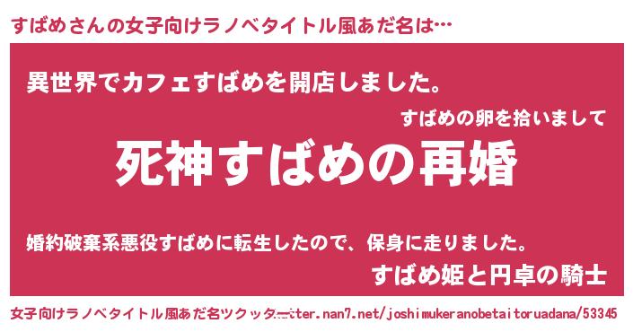 | ヘコむあだ名 | 『すばめ(小並感)』『すばもー』 |