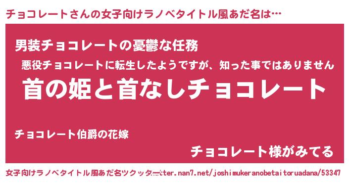 | 男性向けラノベタイトル風あだ名 | 『はたらくチョコレートさま!』 |