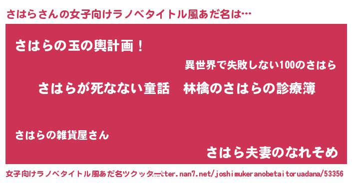 | 男性向けラノベタイトル風あだ名 | 『魔弾の王とさはら』 |