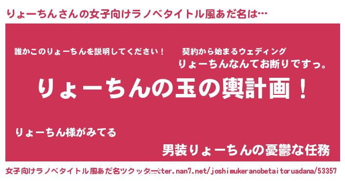 | 男性向けラノベタイトル風あだ名 | 『転生したらりょーちんだった件』 |