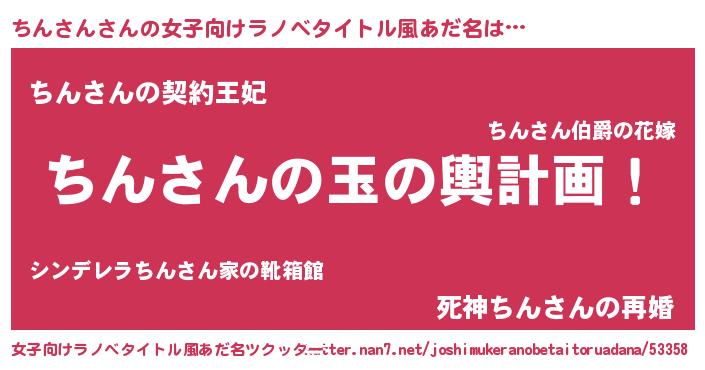 | 胡散臭い通販商品みたいなあだ名 | 『前代未聞の健康食品…その名も「ちんさん」』 |