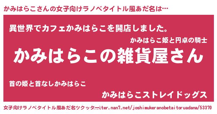 | 男性向けラノベタイトル風あだ名 | 『やはりかみはらこの青春ラブコメはまちがっている 』 |
