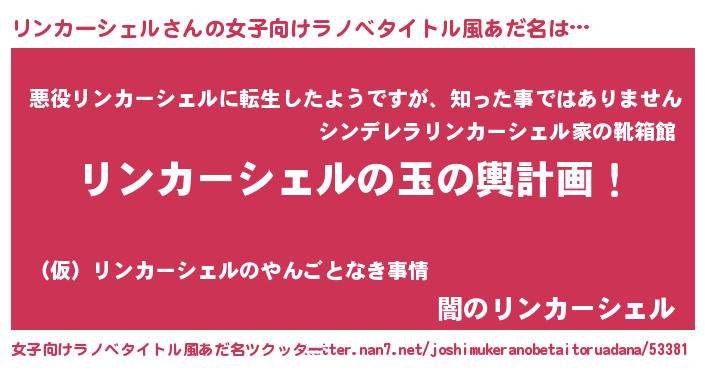 | 男性向けラノベタイトル風あだ名 | 『転生したらリンカーシェルだった件』 |