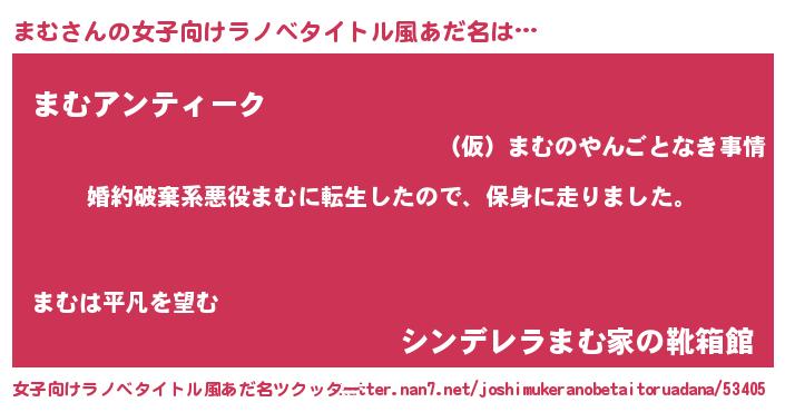| 男性向けラノベタイトル風あだ名 | 『マムスレイヤー』『魔法科高校のまむ』 |