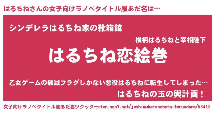 | 男性向けラノベタイトル風あだ名 | 『ノーゲーム・ノーハルチネ』 |