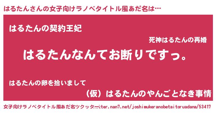 | 意味不明あだ名 | 『自称はるたん』『永久保存はるたん』 |