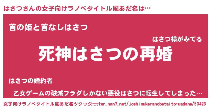 | 欧米人風あだ名 | 『ダニエルはさつ』『アンジェラ・はさつ』 |