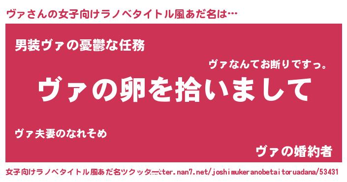 | 男性向けラノベタイトル風あだ名 | 『ヴァの嫁は女の子じゃないと思った?』 |