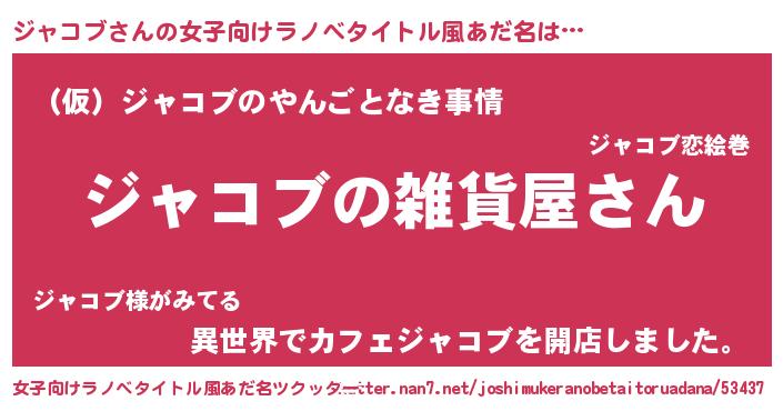 | 男性向けラノベタイトル風あだ名 | 『やはりジャコブの青春ラブコメはまちがっている 』 |