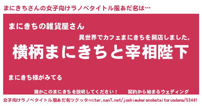 | 男性向けラノベタイトル風あだ名 | 『まにきちに滅ぼされるだけの簡単なお仕事です』 |