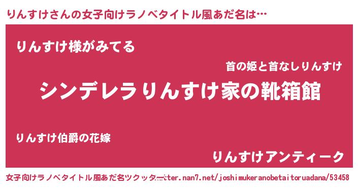 | 胡散臭い通販商品みたいなあだ名 | 『信頼と実績のサプリメント…その名も「りんすけ」』 |