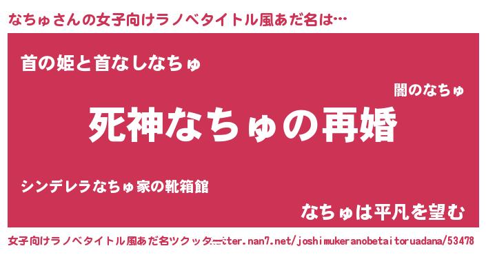 | 男性向けラノベタイトル風あだ名 | 『ノーゲーム・ノーナチュ』 |