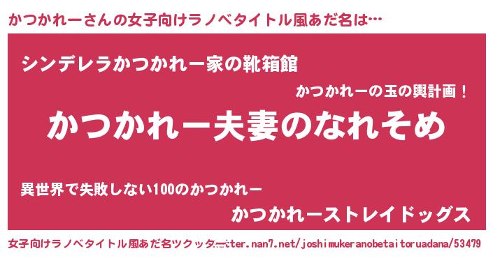 | 男性向けラノベタイトル風あだ名 | 『おまえをオタクにしてやるから、俺をかつかれーにしてくれ! 』 |
