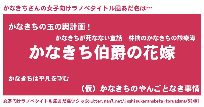 | 男性向けラノベタイトル風あだ名 | 『やはりかなきちの青春ラブコメはまちがっている 』 |