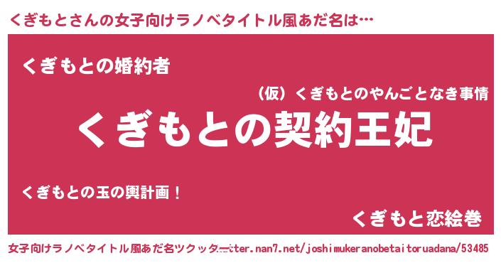 | 男性向けラノベタイトル風あだ名 | 『くぎもとという概念が存在しない退屈な世界 』 |