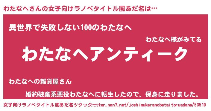 | 意味不明あだ名 | 『自称わたなへ』『永久保存わたなへ』 |